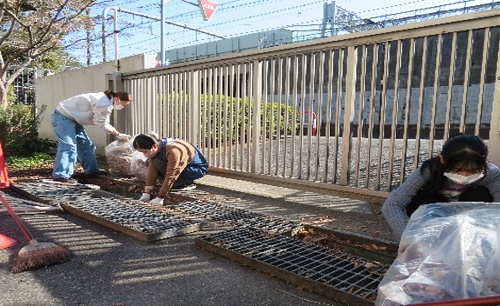 ↑こちらは側溝に溜まった落ち葉を掃除しています
