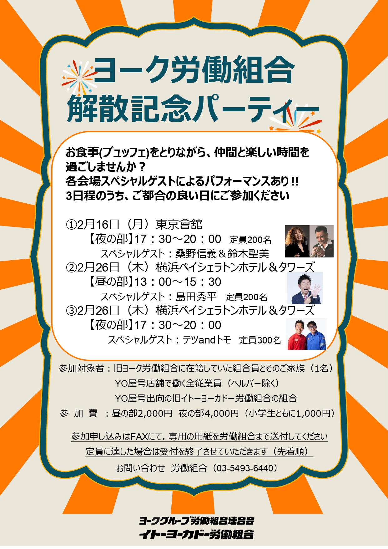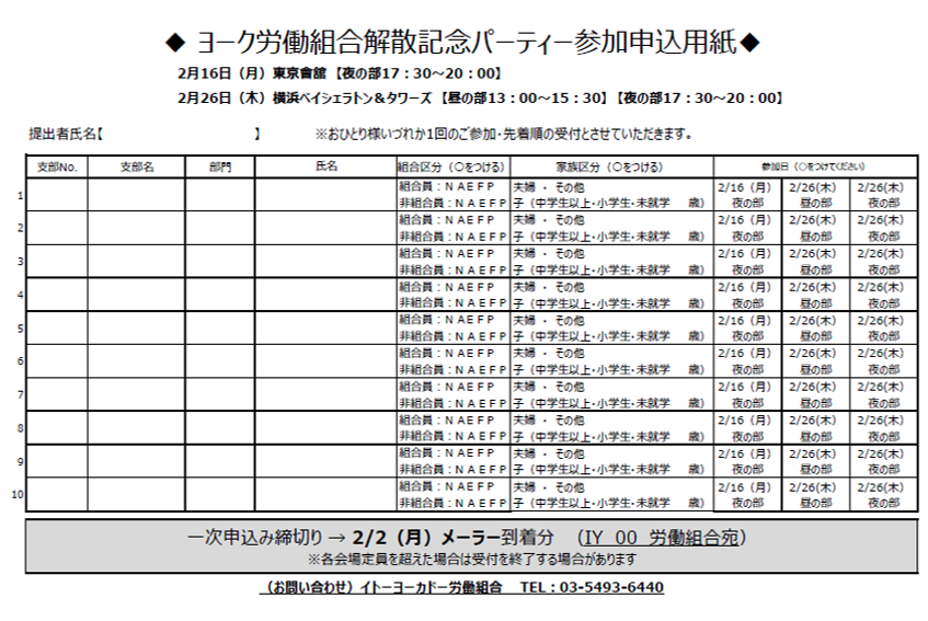 【申込用紙】ヨーク労働組合解散記念パーティー