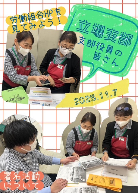 組合員の皆さん。引き続き、組合活動に参加・参画よろしくお願いします♪