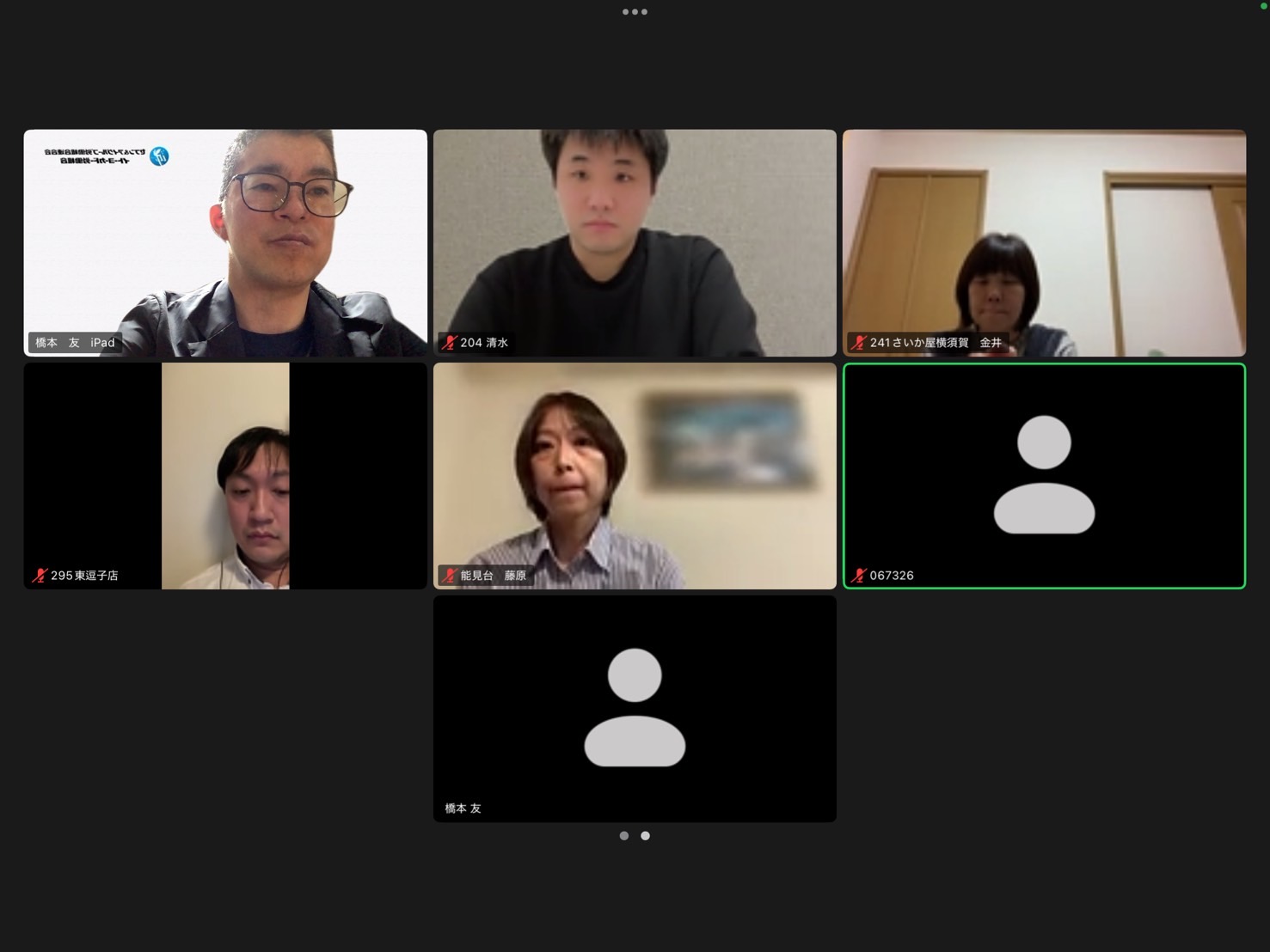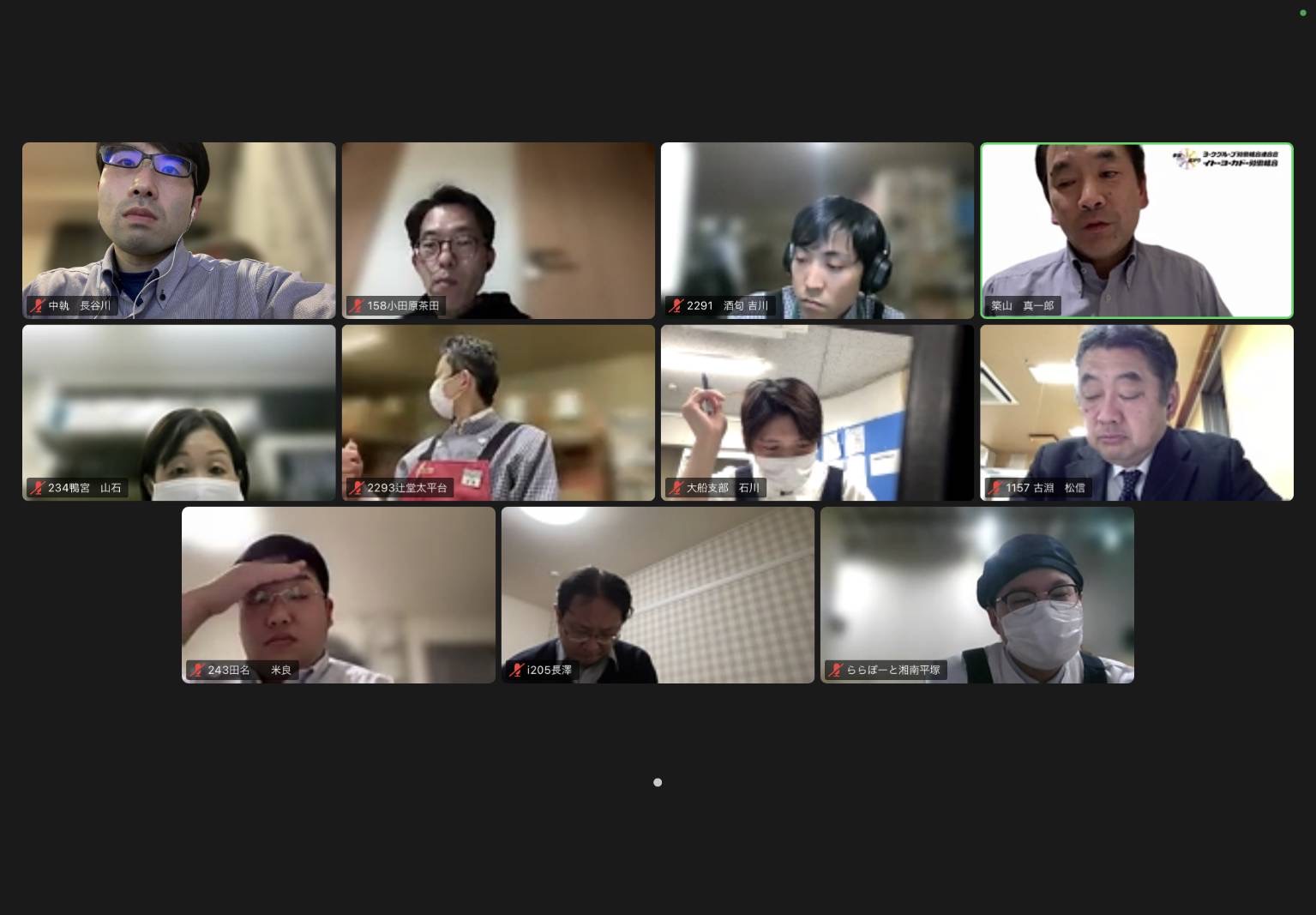 接続トラブルにより、エリア議長の小野さんが参加でず、橋本さん中心でエリアミーティングをスタート!活動の確認のほかに一時金の支部の声も確認いただきました。