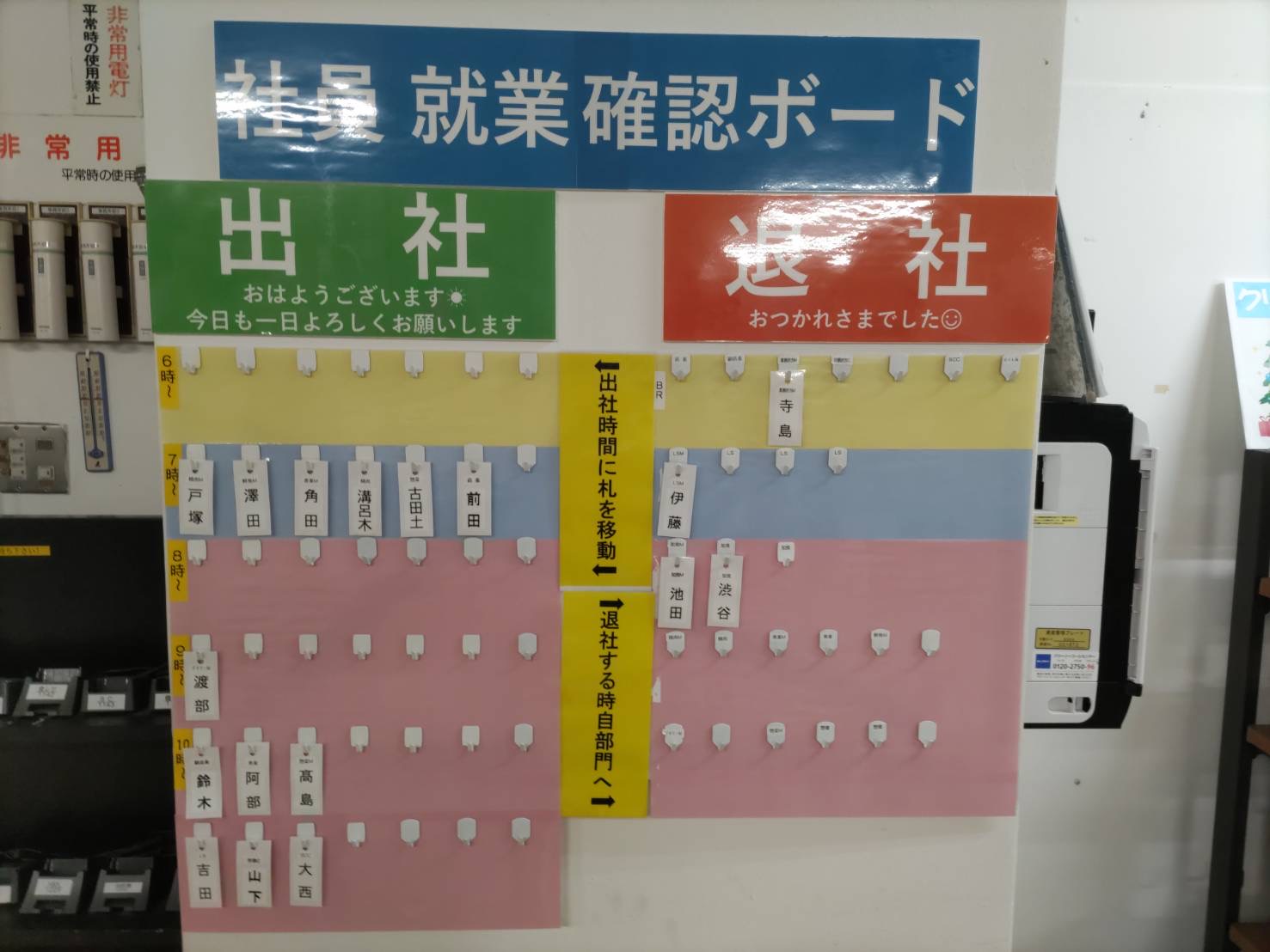 若葉台支部では出社・退社を一目で把握できるよう工夫がされており、見える化されていました。