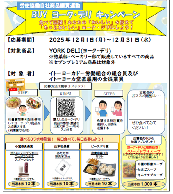 12月1日(月)より開催中のBUYヨーク・デリキャンペーンは皆さん応募していますでしょうか?
