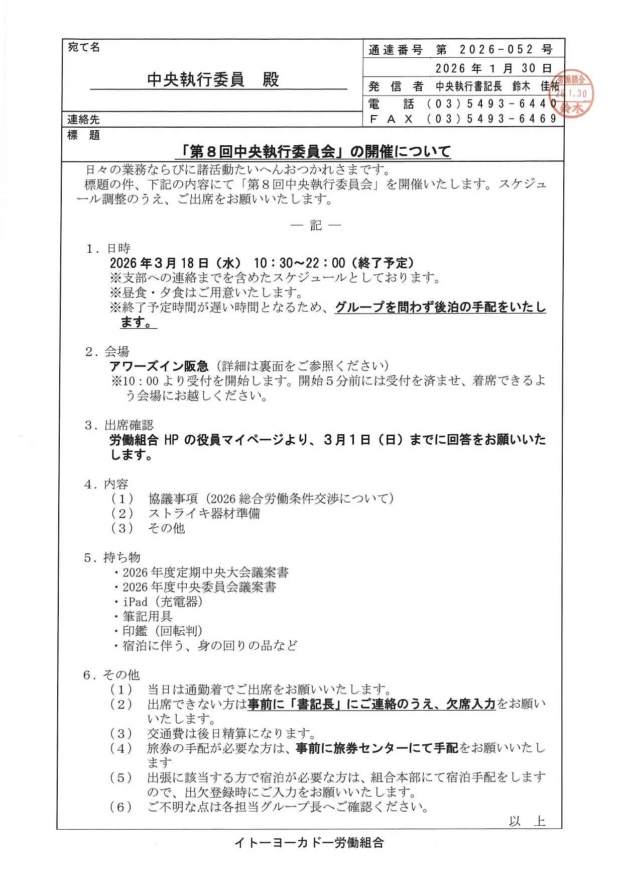 PDFで見る2026年度冬期中執合宿および第5回中央執行委員会の開催について