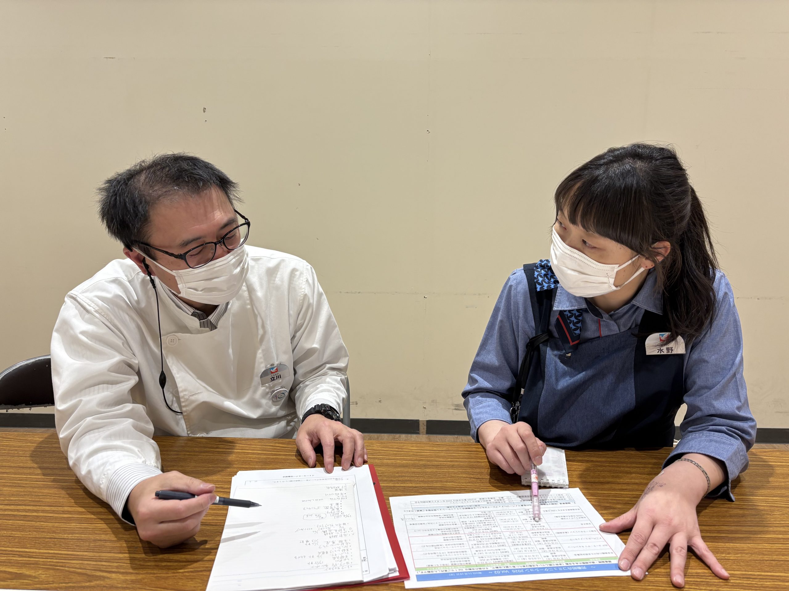 向かって右から青果担当の白土さん🥬と惣菜担当の大西さん🍚