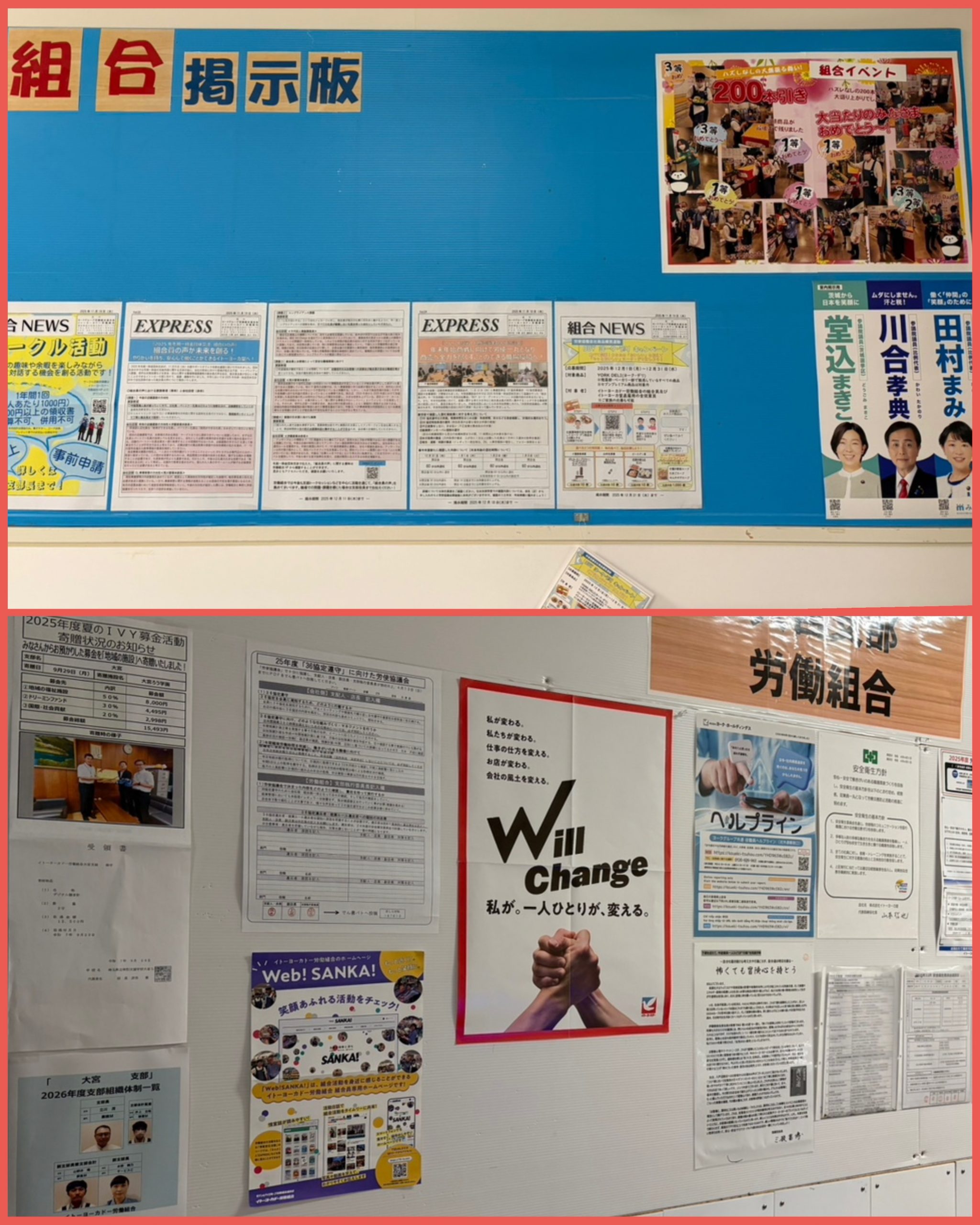 受付には労使で取り組んでいる活動の掲示がされていました📔