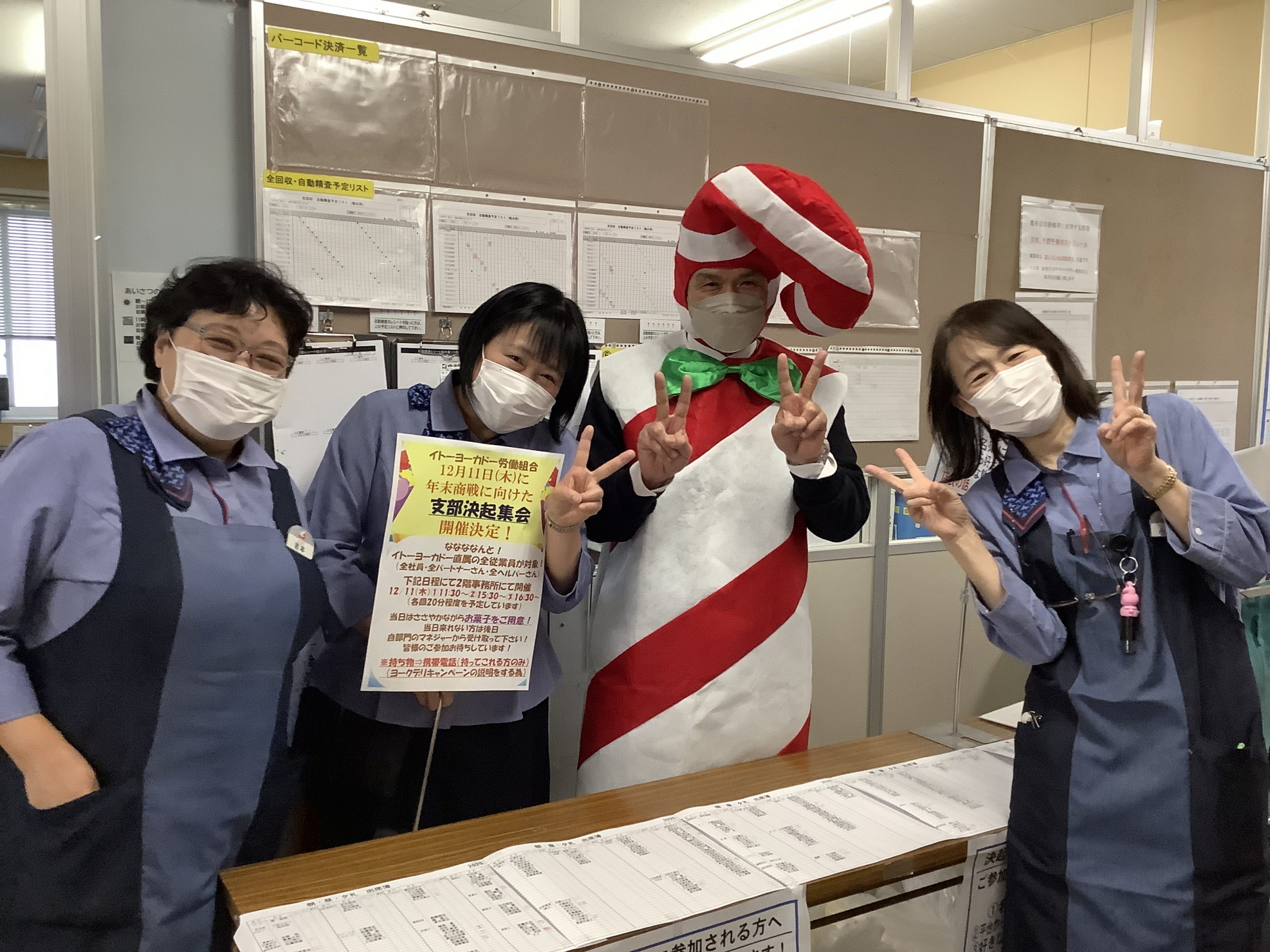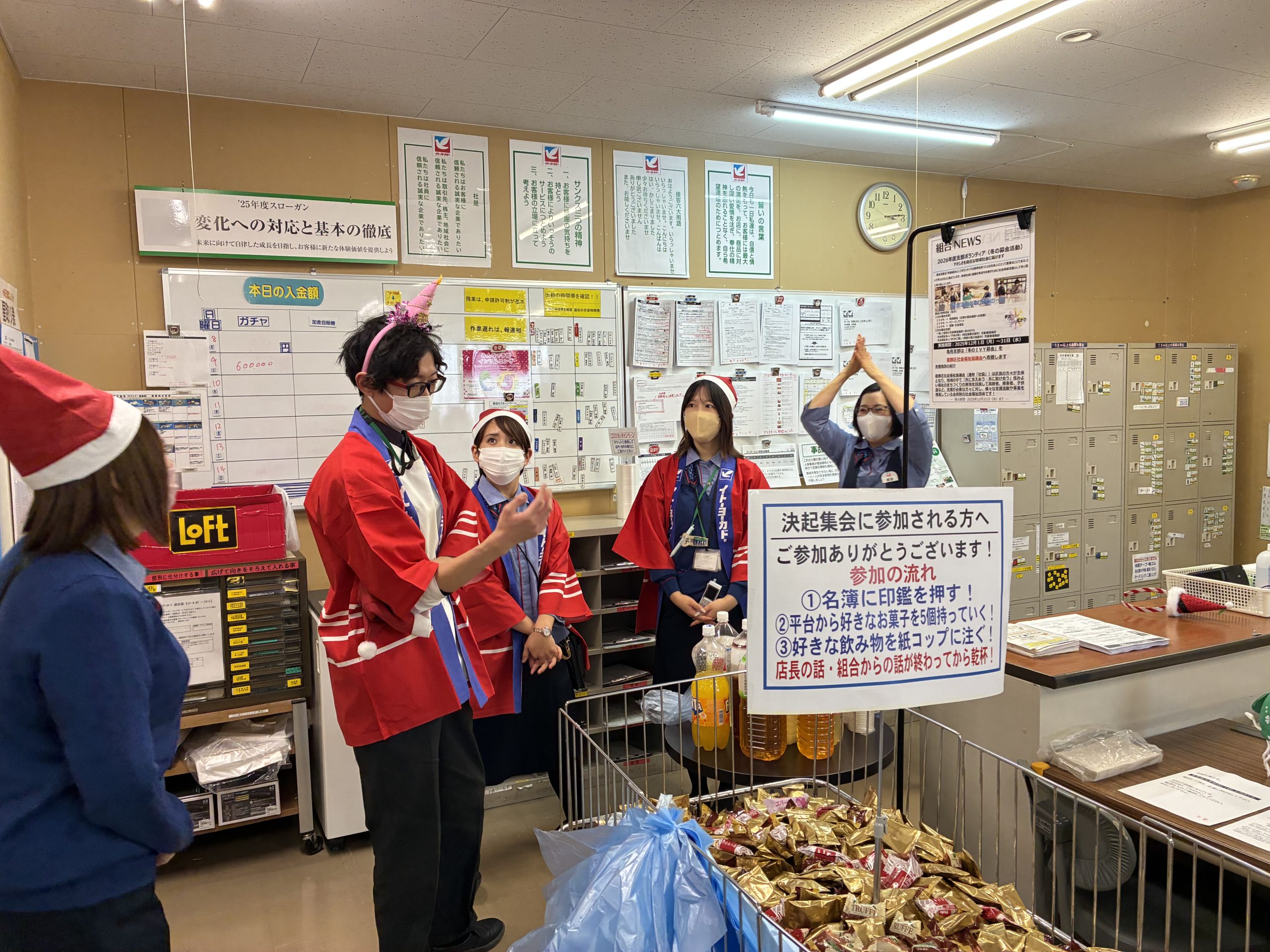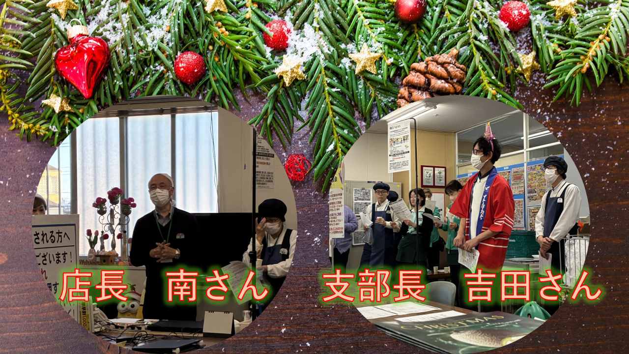 その後、南店長と支部長の吉田さんからは一時金(賞与)支給の背景、決起集会開催の意図、年末年始に向けてお話をいただきました