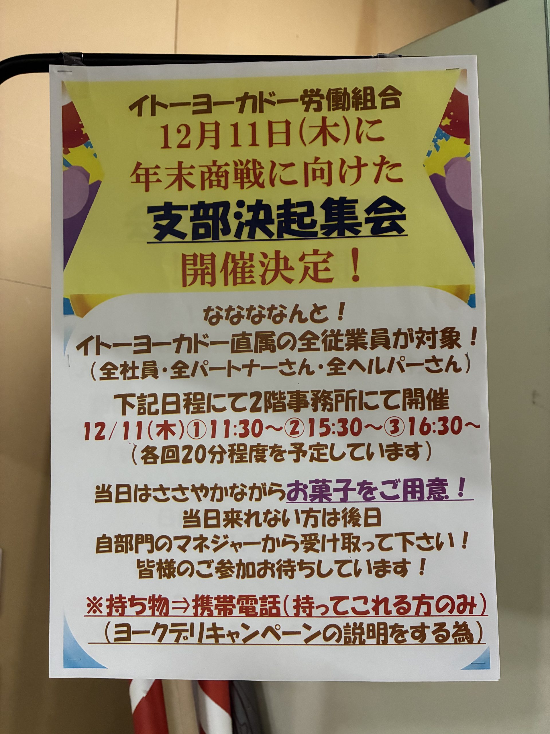 今回の支部決起集会ではBUYヨーク・デリキャンペーン推進の一環として、皆さんに試食をしていただきます🥢