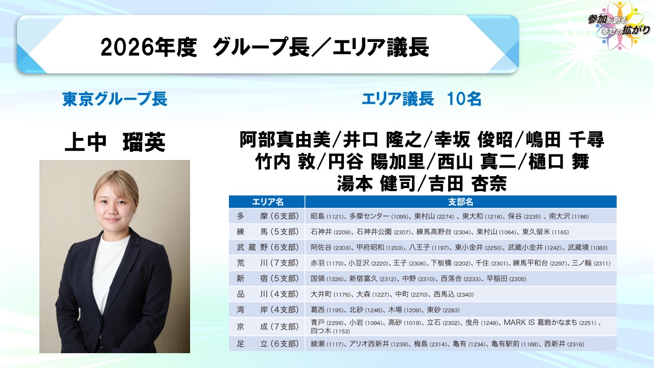 東京グループの皆さん、よろしくお願いします!