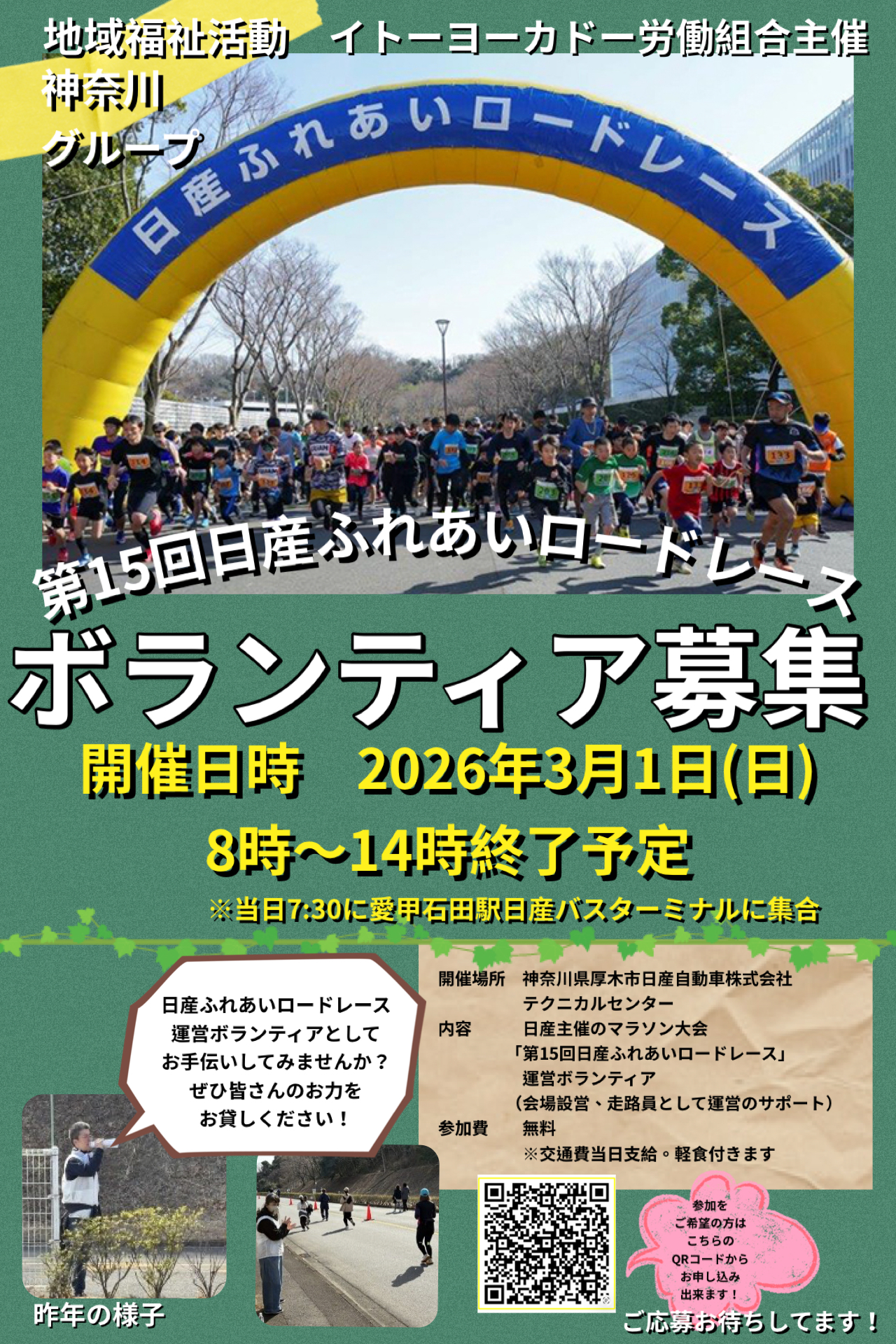 「第15回日産ふれあいロードレース」運営ボランティア参加者募集!